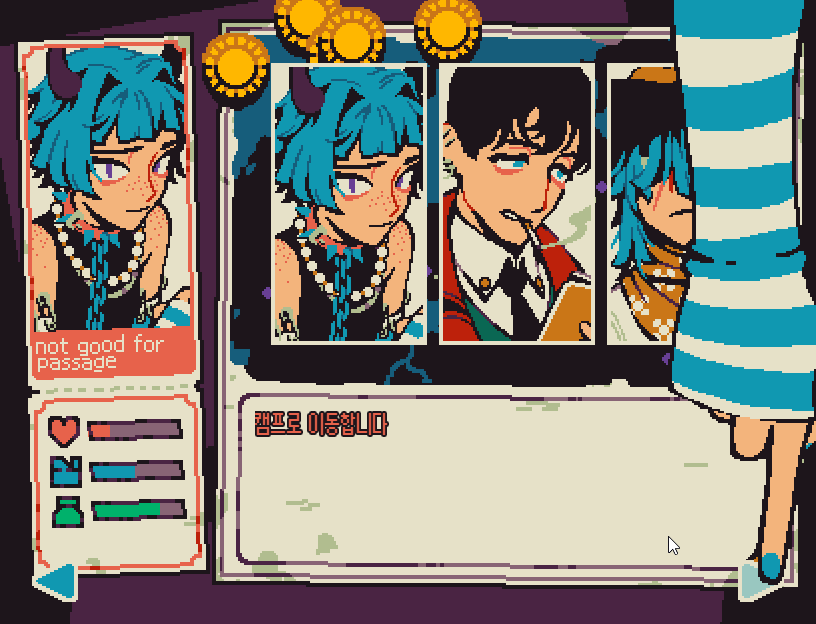 플레이 테스트를 위해 여행에 필요한 3개 장면을 우선적으로 만들고 있습니다. 그 중 지도와 노트 장면은 어느정도 구현이 끝난 상태입니다.