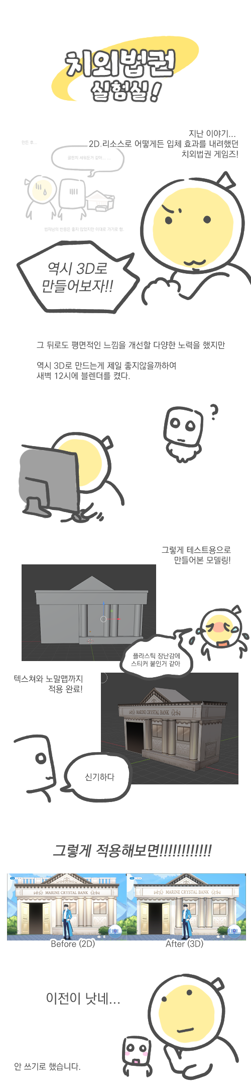 치외법권 실험실! #32026년 3월 29일#개발툰안녕하세요!이번에는 게임 스크린샷이 들어가있는 개발툰으로 찾아뵙니다!재미있게 봐주세요! ^__^이전 포스트치외법권 실험실! #2다음 포스트가장 최근 포스트예요.댓글 0개첫 번째 댓글을 작성해 보세요!댓글 작성