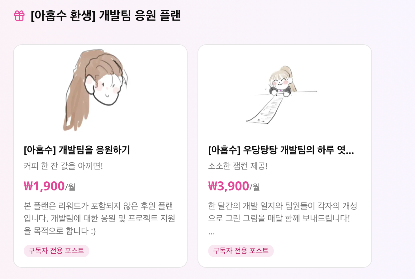 현재 응원 플랜은 총 2가지로 구성되어 있습니다.