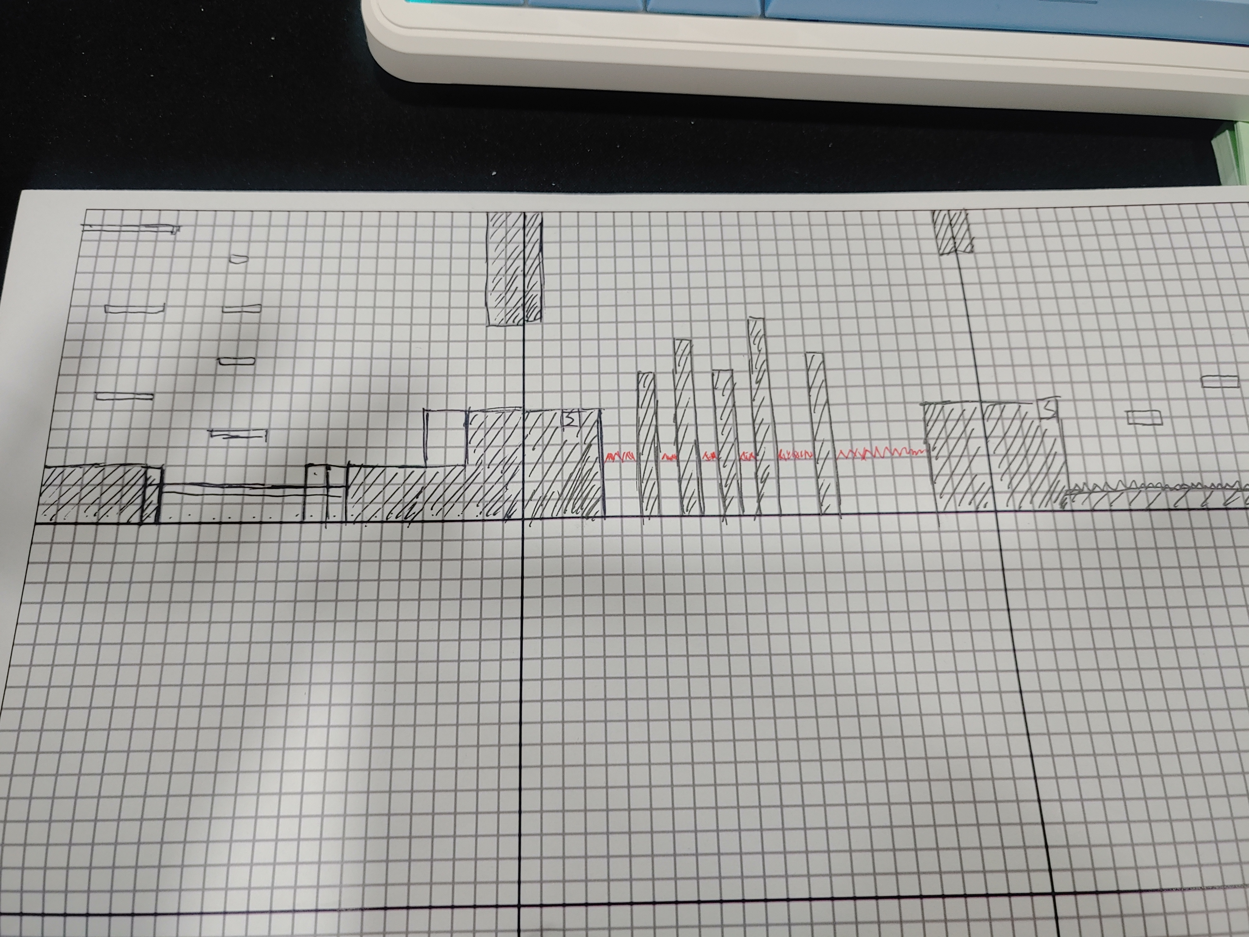 레벨디자인2026년 1월 29일손으로 그리고에디터상에서 타일을 배치합니다ldtk나 tiled등의 툴들, 스프레드시트 등을 이용하는 것보다 더 재미있습니다하하GLIDE하하하3이전 포스트날씨 효과다음 포스트근황 공유댓글 2개마허라2026년 2월 2일와 모눈종이로 레벨 디자인하시는구나... 전체 맵을 전부 모눈종이로 설계하시는건가요?ㄷㄷ00답글하하하작성자2026년 2월 2일전체맵을 이런식으로 그려놓고 세부적인것들은 에디터상에서 조절하면서 합니다 지도가 변경되면 그 위에 풀로 붙여가며 해요 ㅋㅋㅋ..10댓글 작성